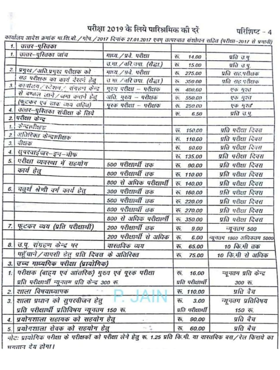 - बोर्ड द्वारा केंद्राधीक्षकों ACS और वीक्षकों के लिये मानदेय बोर्ड परीक्षा 2019