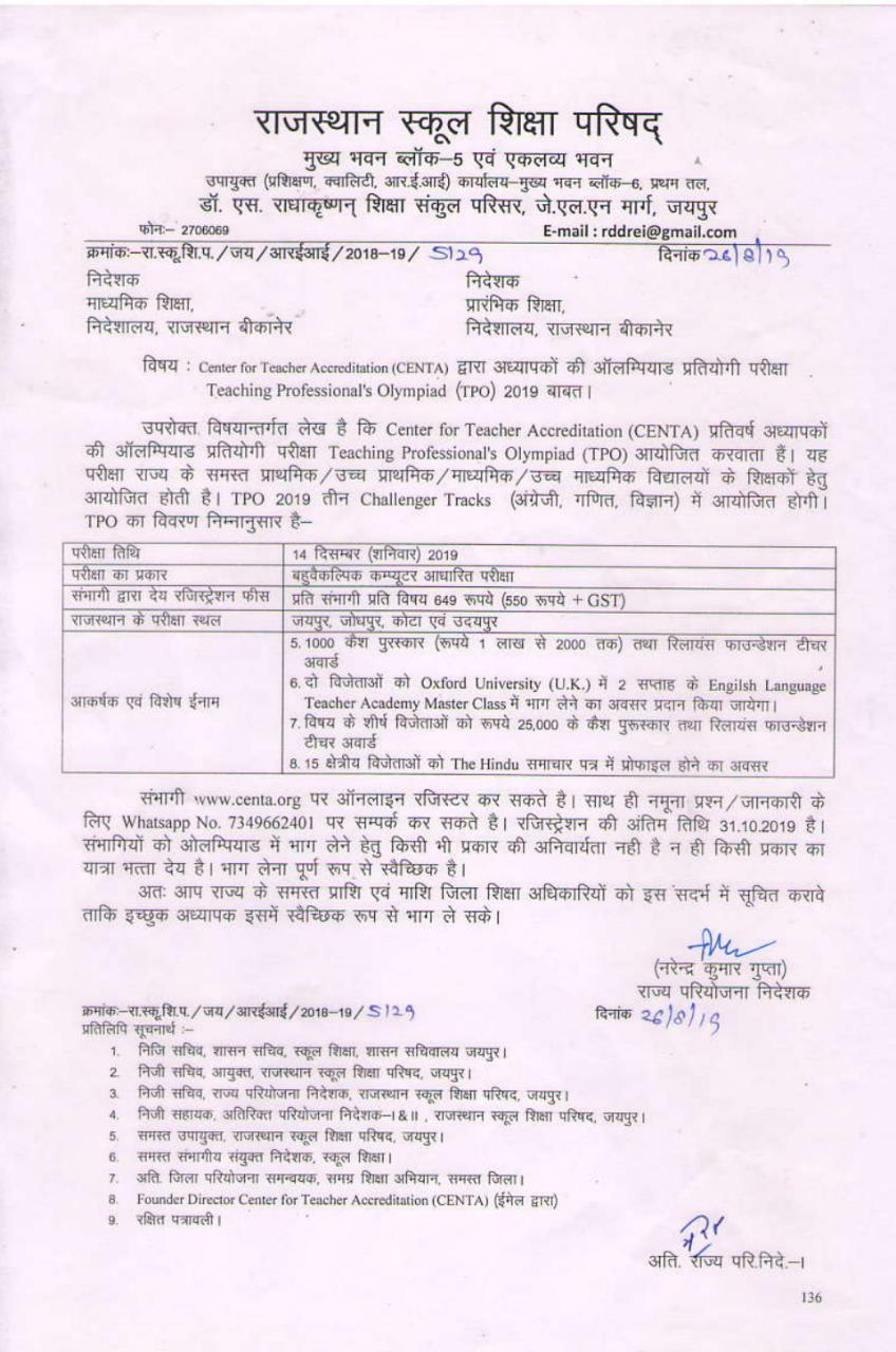 अध्यापकों के लिए ओलंपियाड परीक्षा 2019 |