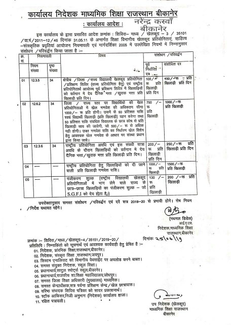 | 138 | खेलकूद प्रतियोगितओं में खिलाडियों के दैनिक भत्ते में वृद्धि | 25-06-2019 |