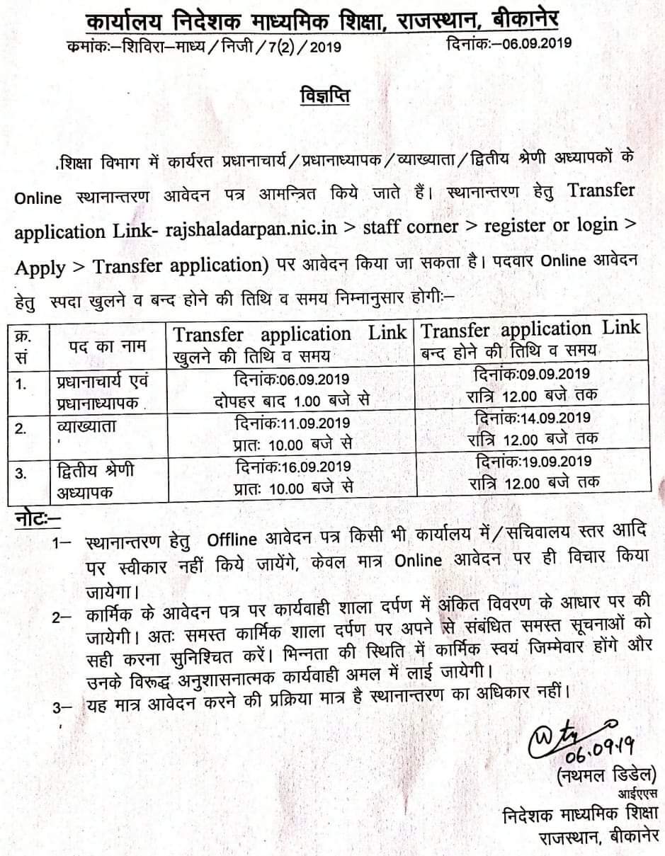 शाला दर्पण पोर्टल के माध्यम से शिक्षक स्थानांतरण आवेदन प्रपत्र हेतु निर्देश व प्रक्रिया |