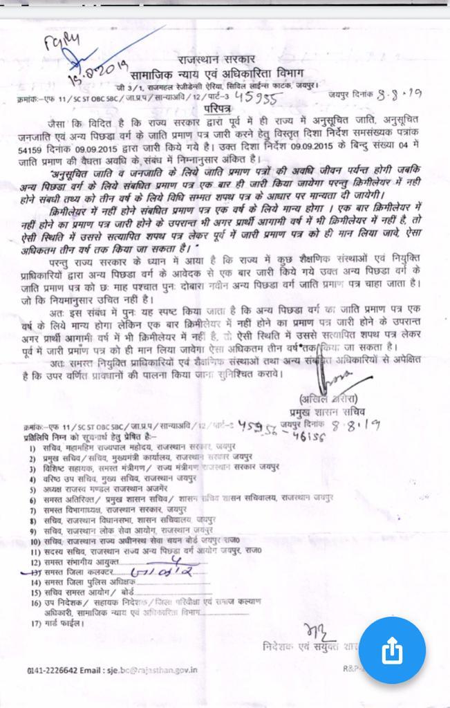 ओबीसी सर्टिफिकेट नियम |